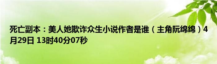 你们好,今天木子分享死亡副本:美人她欺诈众生小说作者是谁,跟随我一起瞧瞧吧!
