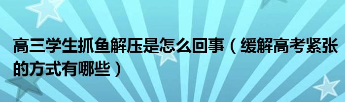 大家好,小高来为大家解答以上问题。高三学生抓鱼解压是怎么回事,缓解高考紧张的方式有哪些很多人还不知道,现在让我们一起来看看吧!