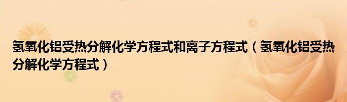 大家好,小高来为大家解答以上问题。氢氧化铝受热分解化学方程式和离子方程式,氢氧化铝受热分解化学方程式很多人还不知道,现在让我们一起来看看吧!