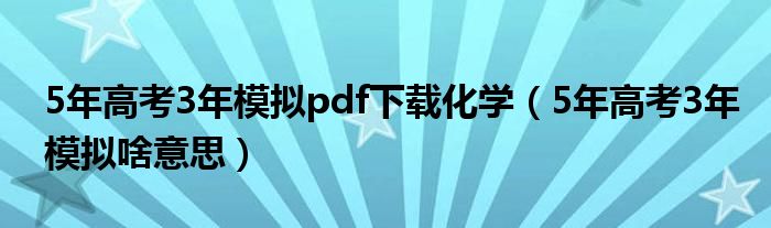 大家好,小高来为大家解答以上问题。5年高考3年模拟pdf下载化学,5年高考3年模拟啥意思很多人还不知道,现在让我们一起来看看吧!