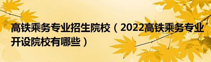 大家好,小高来为大家解答以上问题。高铁乘务专业招生院校,2022高铁乘务专业开设院校有哪些很多人还不知道,现在让我们一起来看看吧!