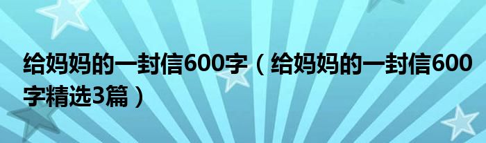 大家好,小高来为大家解答以上问题。给妈妈的一封信600字,给妈妈的一封信600字精选3篇很多人还不知道,现在让我们一起来看看吧!
