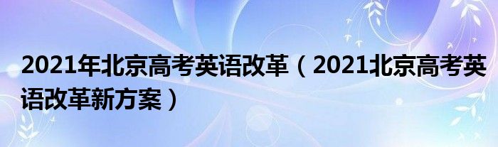 大家好,小高来为大家解答以上问题。2021年北京高考英语改革,2021北京高考英语改革新方案很多人还不知道,现在让我们一起来看看吧!