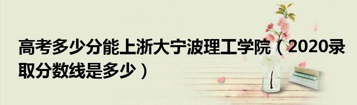 大家好,小高来为大家解答以上问题。高考多少分能上浙大宁波理工学院,2020录取分数线是多少很多人还不知道,现在让我们一起来看看吧!