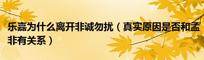 大家好,伊人来为大家解答以上问题。乐嘉为什么离开非诚勿扰,真实原因是否和孟非有关系很多人还不知道,现在让我们一起来看看吧!