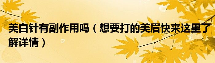 大家好,伊人来为大家解答以上问题。美白针有副作用吗,想要打的美眉快来这里了解详情很多人还不知道,现在让我们一起来看看吧!