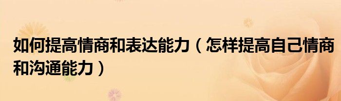 大家好,伊人来为大家解答以上问题。如何提高情商和表达能力,怎样提高自己情商和沟通能力很多人还不知道,现在让我们一起来看看吧!