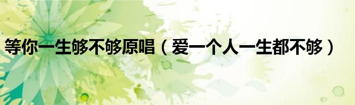 大家好,伊人来为大家解答以上问题。等你一生够不够原唱,爱一个人一生都不够很多人还不知道,现在让我们一起来看看吧!