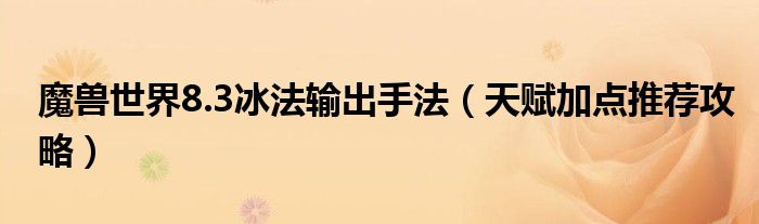 大家好,伊人来为大家解答以上问题。魔兽世界8.3冰法输出手法,天赋加点推荐攻略很多人还不知道,现在让我们一起来看看吧!
