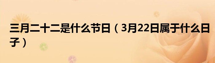 大家好,伊人来为大家解答以上问题。三月二十二是什么节日,3月22日属于什么日子很多人还不知道,现在让我们一起来看看吧!