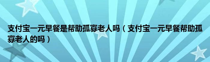 大家好,伊人来为大家解答以上问题。支付宝一元早餐是帮助孤寡老人吗,支付宝一元早餐帮助孤寡老人的吗很多人还不知道,现在让我们一起来看看吧!