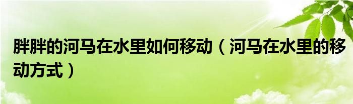 大家好,伊人来为大家解答以上问题。胖胖的河马在水里如何移动,河马在水里的移动方式很多人还不知道,现在让我们一起来看看吧!