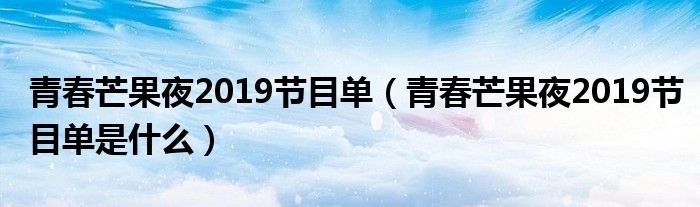大家好,伊人来为大家解答以上问题。青春芒果夜2019节目单,青春芒果夜2019节目单是什么很多人还不知道,现在让我们一起来看看吧!