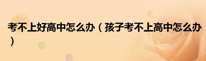 大家好,伊人来为大家解答以上问题。考不上好高中怎么办,孩子考不上高中怎么办很多人还不知道,现在让我们一起来看看吧!