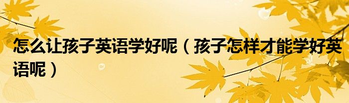 大家好,伊人来为大家解答以上问题。怎么让孩子英语学好呢,孩子怎样才能学好英语呢很多人还不知道,现在让我们一起来看看吧!