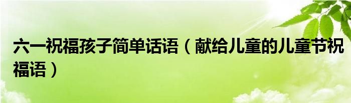 大家好,伊人来为大家解答以上问题。六一祝福孩子简单话语,献给儿童的儿童节祝福语很多人还不知道,现在让我们一起来看看吧!