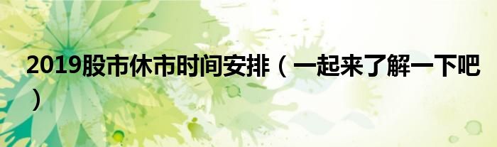 大家好,伊人来为大家解答以上问题。2019股市休市时间安排,一起来了解一下吧很多人还不知道,现在让我们一起来看看吧!