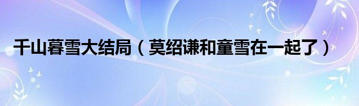 大家好,伊人来为大家解答以上问题。千山暮雪大结局,莫绍谦和童雪在一起了很多人还不知道,现在让我们一起来看看吧!