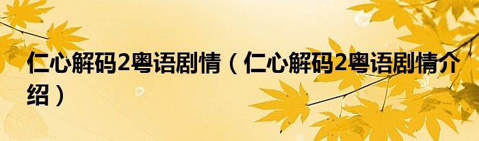大家好,伊人来为大家解答以上问题。仁心解码2粤语剧情,仁心解码2粤语剧情介绍很多人还不知道,现在让我们一起来看看吧!