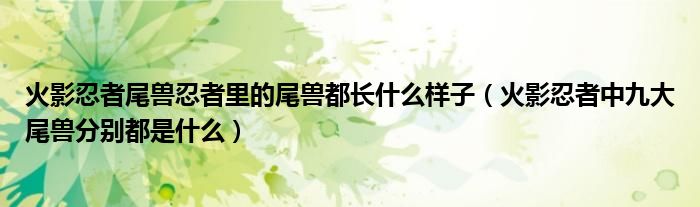 大家好,伊人来为大家解答以上问题。火影忍者尾兽忍者里的尾兽都长什么样子,火影忍者中九大尾兽分别都是什么很多人还不知道,现在让我们一起来看看吧!