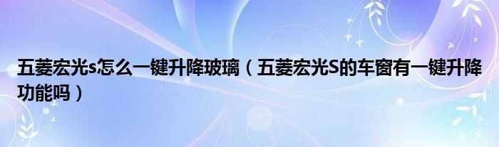 大家好,伊人来为大家解答以上问题。五菱宏光s怎么一键升降玻璃,五菱宏光S的车窗有一键升降功能吗很多人还不知道,现在让我们一起来看看吧!