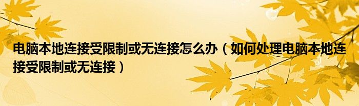 大家好,伊人来为大家解答以上问题。电脑本地连接受限制或无连接怎么办,如何处理电脑本地连接受限制或无连接很多人还不知道,现在让我们一起来看看吧!