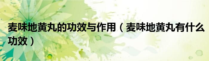 大家好,伊人来为大家解答以上问题。麦味地黄丸的功效与作用,麦味地黄丸有什么功效很多人还不知道,现在让我们一起来看看吧!