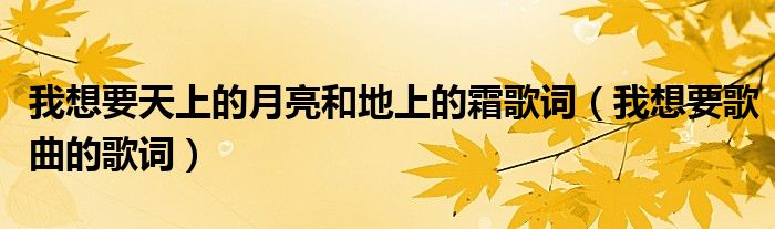 大家好,伊人来为大家解答以上问题。我想要天上的月亮和地上的霜歌词,我想要歌曲的歌词很多人还不知道,现在让我们一起来看看吧!