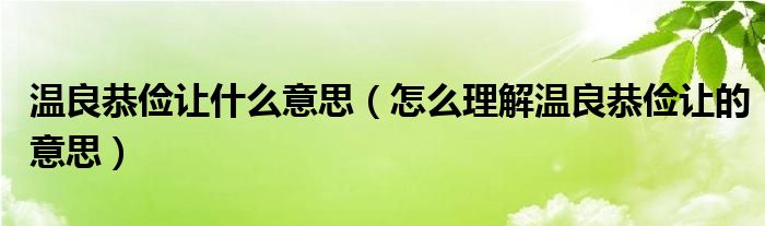 大家好,伊人来为大家解答以上问题。温良恭俭让什么意思,怎么理解温良恭俭让的意思很多人还不知道,现在让我们一起来看看吧!