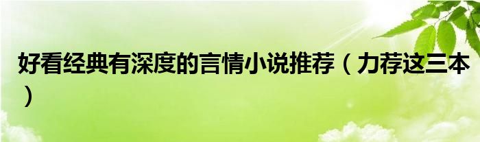大家好,伊人来为大家解答以上问题。好看经典有深度的言情小说推荐,力荐这三本很多人还不知道,现在让我们一起来看看吧!