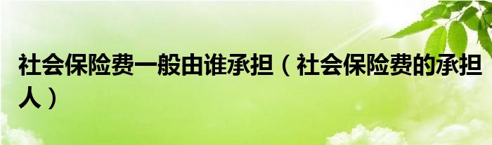 大家好,伊人来为大家解答以上问题。社会保险费一般由谁承担,社会保险费的承担人很多人还不知道,现在让我们一起来看看吧!
