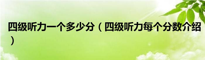 大家好,伊人来为大家解答以上问题。四级听力一个多少分,四级听力每个分数介绍很多人还不知道,现在让我们一起来看看吧!