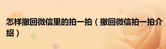 大家好,伊人来为大家解答以上问题。怎样撤回微信里的拍一拍,撤回微信拍一拍介绍很多人还不知道,现在让我们一起来看看吧!