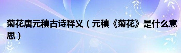 大家好,伊人来为大家解答以上问题。菊花唐元稹古诗释义,元稹《菊花》是什么意思很多人还不知道,现在让我们一起来看看吧!