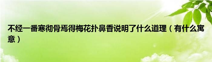 大家好,伊人来为大家解答以上问题。不经一番寒彻骨焉得梅花扑鼻香说明了什么道理,有什么寓意很多人还不知道,现在让我们一起来看看吧!