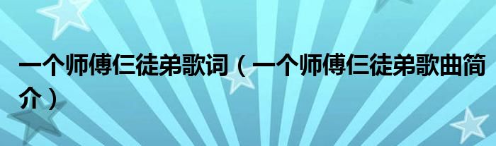 大家好,伊人来为大家解答以上问题。一个师傅仨徒弟歌词,一个师傅仨徒弟歌曲简介很多人还不知道,现在让我们一起来看看吧!