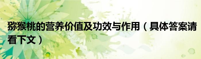 大家好,伊人来为大家解答以上问题。猕猴桃的营养价值及功效与作用,具体答案请看下文很多人还不知道,现在让我们一起来看看吧!