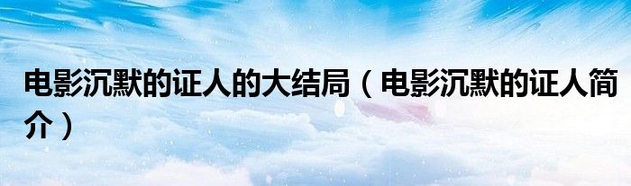 大家好,伊人来为大家解答以上问题。电影沉默的证人的大结局,电影沉默的证人简介很多人还不知道,现在让我们一起来看看吧!