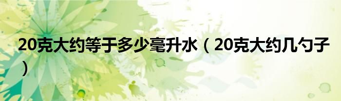 大家好,小生来为大家讲解下。20克大约等于多少毫升水,20克大约几勺子很多人还不知道,现在让我们一起来看看吧!