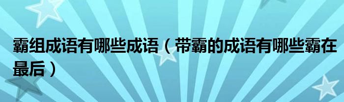 大家好,小生来为大家讲解下。霸组成语有哪些成语,带霸的成语有哪些霸在最后很多人还不知道,现在让我们一起来看看吧!