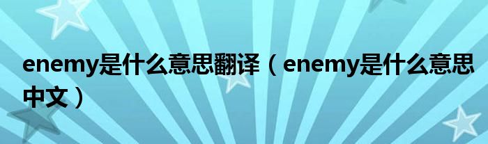大家好,小生来为大家讲解下。enemy是什么意思翻译,enemy是什么意思中文很多人还不知道,现在让我们一起来看看吧!