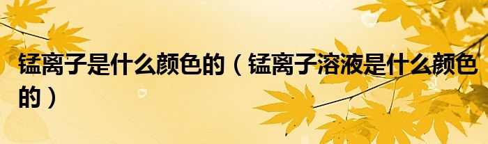 大家好,小生来为大家讲解下。锰离子是什么颜色的,锰离子溶液是什么颜色的很多人还不知道,现在让我们一起来看看吧!