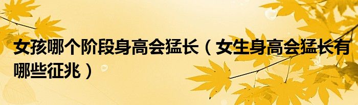 大家好,小生来为大家讲解下。女孩哪个阶段身高会猛长,女生身高会猛长有哪些征兆很多人还不知道,现在让我们一起来看看吧!