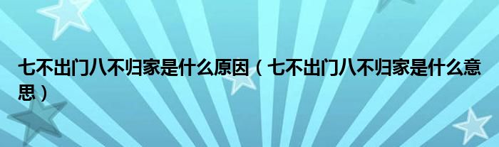 大家好,小生来为大家讲解下。七不出门八不归家是什么原因,七不出门八不归家是什么意思很多人还不知道,现在让我们一起来看看吧!