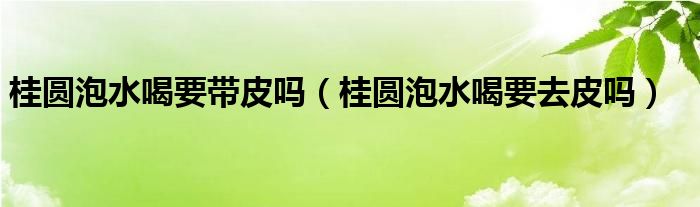大家好,小生来为大家讲解下。桂圆泡水喝要带皮吗,桂圆泡水喝要去皮吗很多人还不知道,现在让我们一起来看看吧!