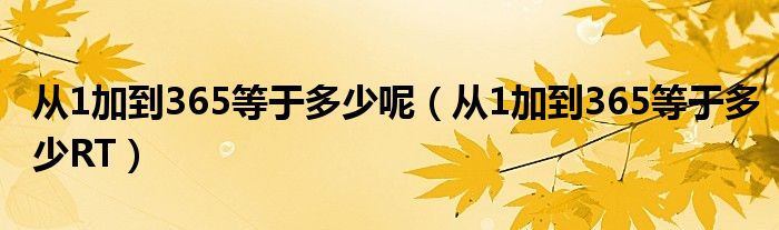 大家好,小生来为大家讲解下。从1加到365等于多少呢,从1加到365等于多少RT很多人还不知道,现在让我们一起来看看吧!