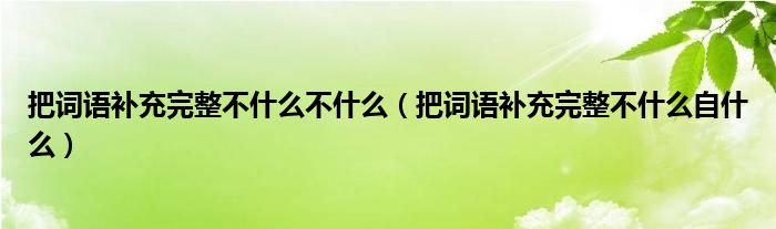 大家好,小生来为大家讲解下。把词语补充完整不什么不什么,把词语补充完整不什么自什么很多人还不知道,现在让我们一起来看看吧!