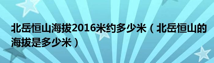 大家好,小生来为大家讲解下。北岳恒山海拔2016米约多少米,北岳恒山的海拔是多少米很多人还不知道,现在让我们一起来看看吧!