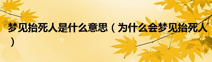 大家好,伊人来为大家解答以上问题。梦见抬死人是什么意思,为什么会梦见抬死人很多人还不知道,现在让我们一起来看看吧!