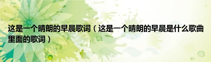 大家好,伊人来为大家解答以上问题。这是一个晴朗的早晨歌词,这是一个晴朗的早晨是什么歌曲里面的歌词很多人还不知道,现在让我们一起来看看吧!